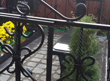 Покрасить ограду, так как чаще всего при установке ограды красят транспортировочной краской, которая приходит в негодность через год. Облицевать бетонный цоколь и бетон обрамляющий цветник. В данном случае для этого мы использовали керамогранит. Установили гранитные лавочку и столик. Посадили две туи и кустовые хризантемы в цветник. Заменили пластиковую вазу на гранитную. Уложили гранитную брусчатку на пол.